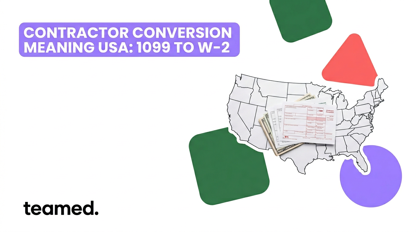 Contractor conversion in the USA means changing a worker from 1099 independent contractor to W-2 employee. It's a complete shift: you'll withhold taxes, provide benefits, apply company policies, and take on employer obligations. For mid-market companies juggling contractors here, EOR employees there, and entities somewhere else, a botched conversion can trigger audits, back taxes, and penalties that ripple through every country where you operate.