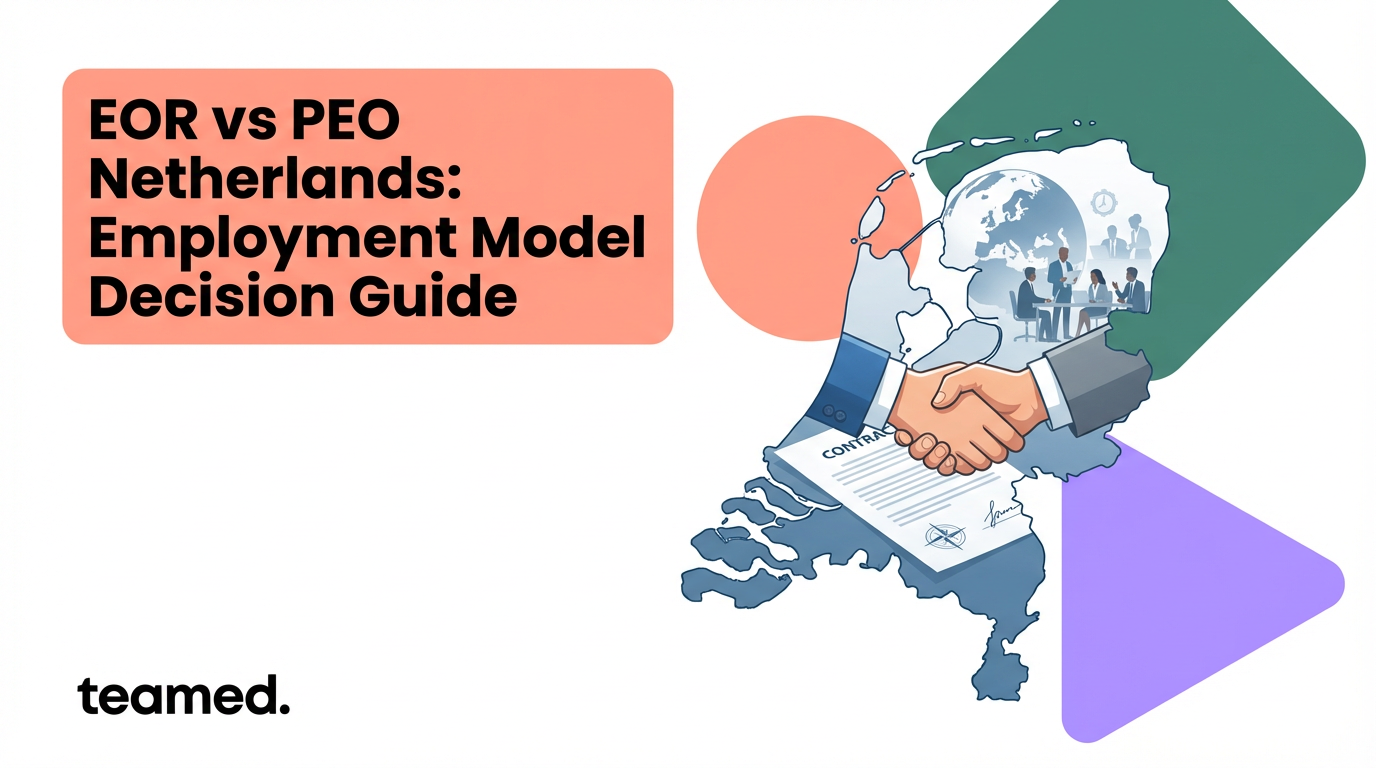 Teamed helps mid-market companies stop the vendor sprawl, make sense of employment model choices, and handle the messy transitions between them. After working with over 1,000 companies, we see the same Netherlands pattern: you think you're choosing between EOR and PEO, but you're really choosing between speed and control, between containing risk now and building for scale later. Most guides just define terms and walk away. Meanwhile, you're facing board questions about why this costs six figures, whether you'll trigger a works council, and which collective agreement actually applies to your developers. Here's what actually matters when you're making this decision: Can your provider tell you when to switch models, not just execute what you ask for? Do they know the difference between UWV route and court route terminations? Can they handle it when you hit 50 employees and suddenly need works council elections? Will this choice reduce your vendor chaos or add another spreadsheet to reconcile? Can you move from contractors to EOR to your own entity without making employees re-apply for their own jobs? And when the tax authority starts asking about your contractors, does your provider know what DBA enforcement actually looks like?